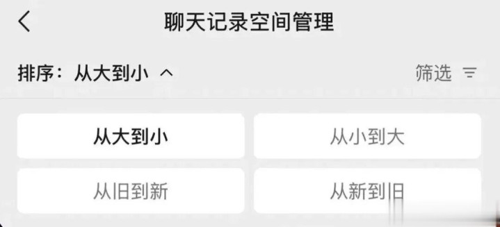 路径:存储空间 → 聊天记录 → 管理 → 从排序中选择“从旧到新”排序 → 批量删除过期工作群文件、旧视频等。