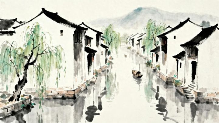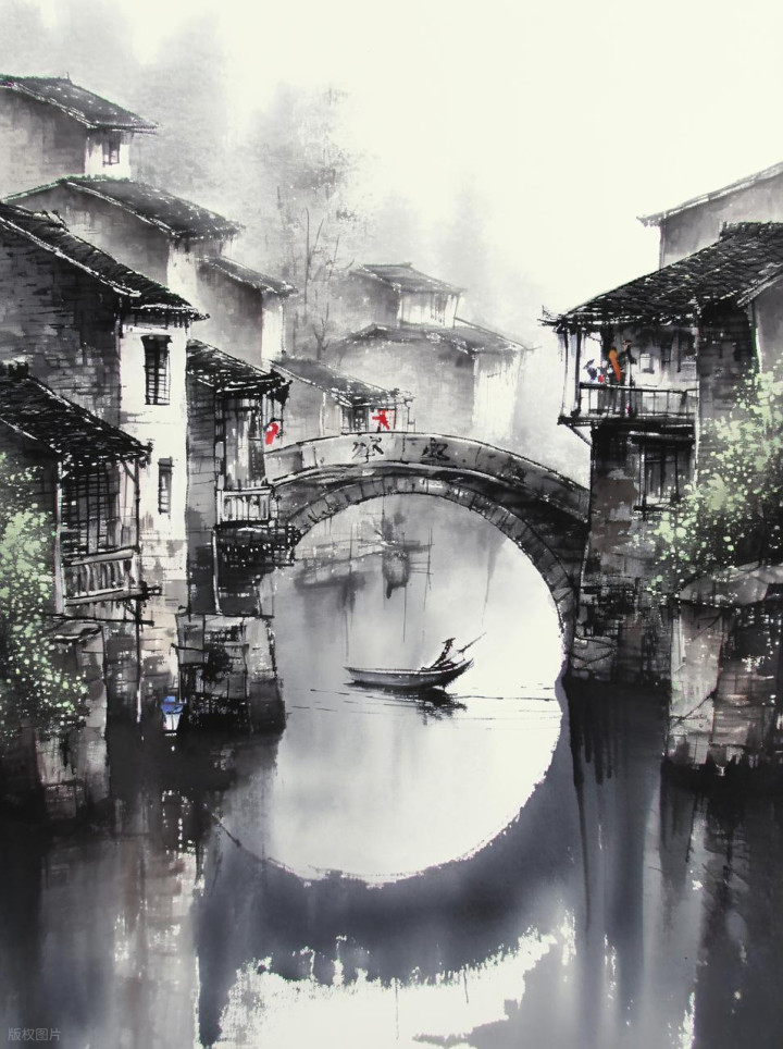 江南水乡水墨画